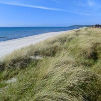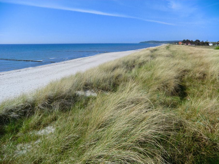 In unmittelbarer Nachbarschaft befindet sich das von Max Taut gebaute Haus „Karusel“, das durch den Stummfilmstar Asta Nielsen in den zwanziger/dreißiger Jahren des vorigen Jahrhunderts einer der vielen kulturellen Mittelpunkte der Insel war. Der kilometerlange feinsandige Weststrand der zum Baden einlädt ist wie auch der Bodden mit dem Seglerhafen zur Rügenseite in wenigen Gehminuten zu erreichen. Diverse Einkaufsmöglichkeiten, Arztpraxis, Spielplätze, Hafen, Gaststätten, Galerien bieten vielfältige kulinarische, sportliche und kulturelle Angebote sind ebenfalls in wenigen Geh- /Radminuten bequem zu erreichen.